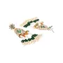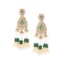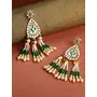 Green and white handcrafted teardrop shaped drop earrings gold-plated and has artificial stones and beads. Secured with a post and back closure.