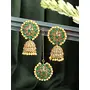 Priyaasi Green Beads Stones Golden ColorJhumka Earring with MaangTikka