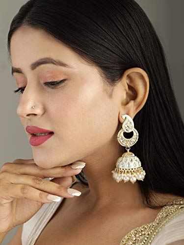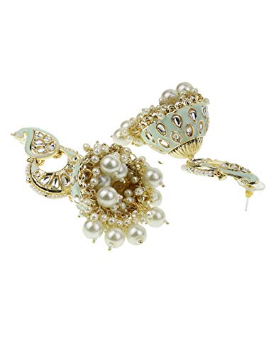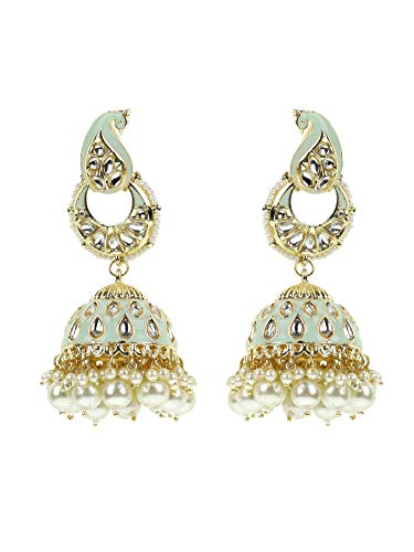 HomeFashionEarringsPriyaasi Mint Green Ethnic Indian Jhumka Earring for Women | Trendy Paisley Chandbali Design | Kundan-Studded | Pearl Drop| Plating of Gold | Earrings for Women with Pushback Closure