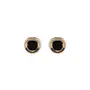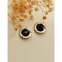 This pair of stud earrings for women is made of brass and is rose gold-. These earring has a pushback closure. This black and round pair of earrings has rose design. This pair of earrings for women will look great with regular and occasion wear.