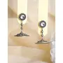 Priyaasi Round Studded Floral Motif Silver Earrings