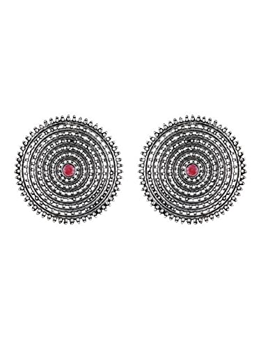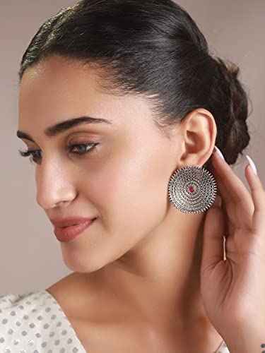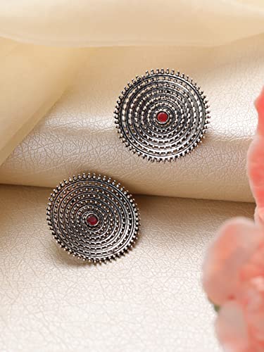 Priyaasi Ruby Round Layered Silver Stud Earrings