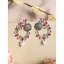 Design & Style: These traditional earrings have an intricate design and are adorned with red and white stones.