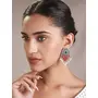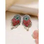 Priyaasi Studded Red Green Floral Leaf Silver Earrings