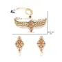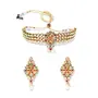 Priyaasi Traditional Latest Kundan Floral Design Gold-ColorEthnic Wear Necklace Set & Earrings for Women (Magenta & Green)
