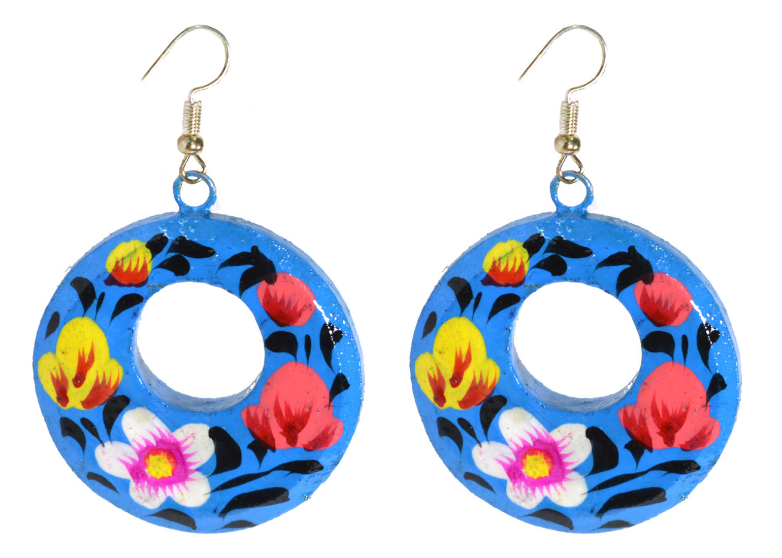 An eyecatching set of earrings with floral pattern made of paper mache by the artisans from Kashmir, India. This unique handicraft is an all occasion gift to add grace to any outfit.