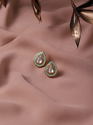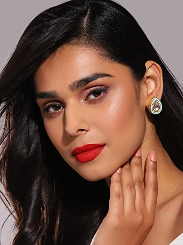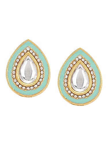 Ruby Raang Women's Mixed Metal Artificial Kundan Earrings - Traditional Jewellery Set for Women (Gold)