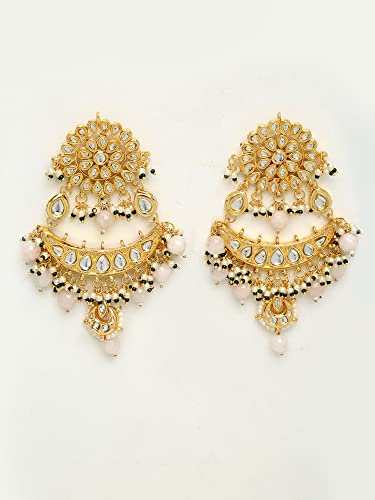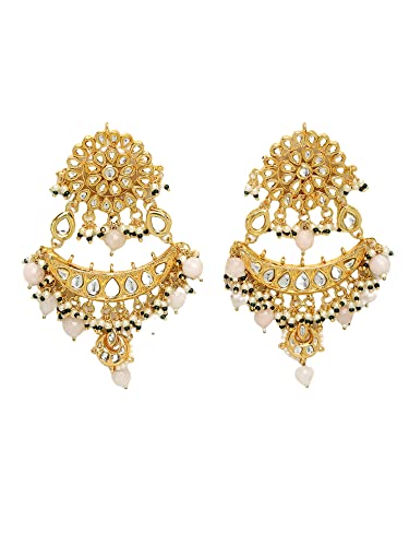 Ruby Raang Women's Mixed Metal Artificial Kundan Earrings - Traditional Jewellery Set for Women (k)