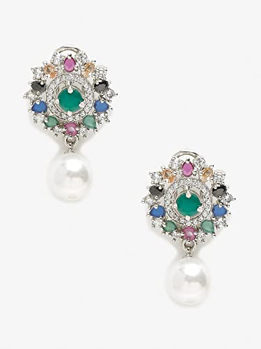 Ruby Raang Women's Mixed Metal Artificial Kundan Earrings - Traditional Jewellery Set for Women (Multicolor)