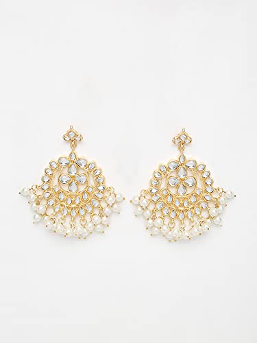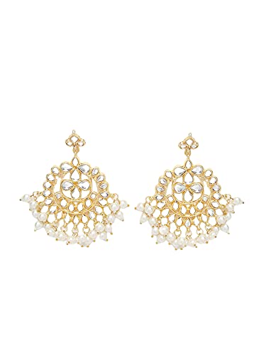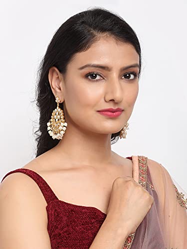Ruby Raang Women's Mixed Metal Artificial Kundan Earrings - Traditional Jewellery Set for Women (White)