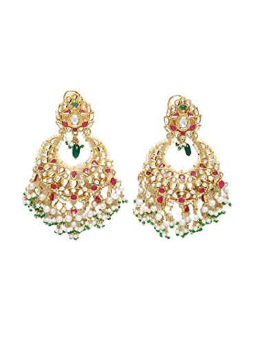 Ruby Raang Women's Mixed Metal Artificial Kundan Earrings - Traditional Jewellery Set for Women (White)