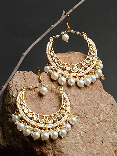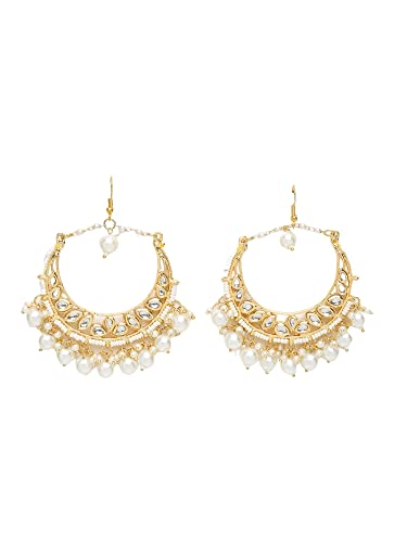 Ruby Raang Women's Mixed Metal Artificial Kundan Earrings - Traditional Jewellery Set for Women (White)