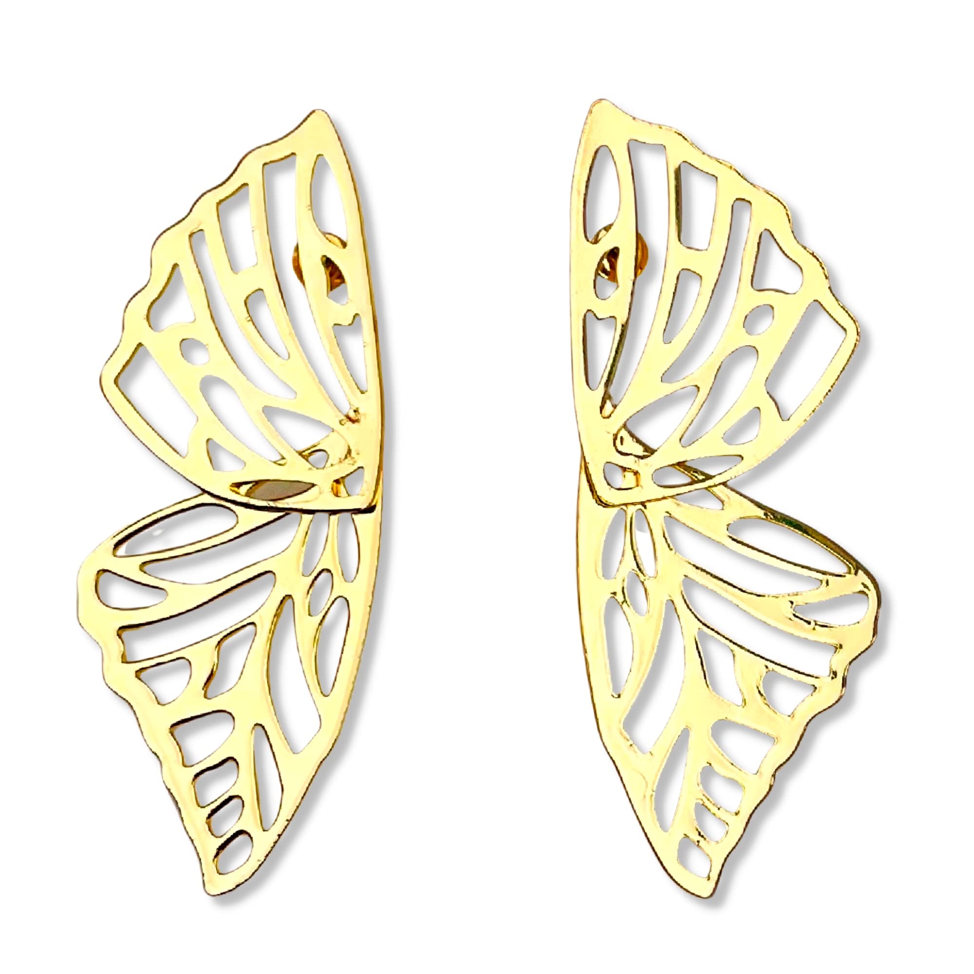 A symbol of change and transformation our Angel Wings earrings are one of a kind earrings that represent metamorphosis. Contemporary exaggerated butterfly wings earrings to add glam to your everyday gifts. Our Angel Wings earrings feature two butterfly asymmetric exaggerated hollow wings laid in a gold-toned metal with a push back earring back closure for your comfort. ¨Quirky and playful these earrings are for the women that like to dress to express. Fly high with our Butterfly Wings earrings and add a touch of drama to all your fits ranging from everyday wear to brunch with the girls to night outs and parties. Super versatile these gold-toned contemporary earrings are going to be your all time g-to in your jewellery wardrobe. One of a kind these earrings will suit all your western and ethnic fits effortlessly. Get in with the trend and carry your wings for everyone to see. ¨¨ Chic redefined with our Iqraar earrings that look and feel like a million bucks and are a head-turner. Radiate glow with the sun during the day and shine like the stars at night with these earrings that make day-to-night looks super easy and comfy! Salve Style Tip:¨Pair our Angel Wings earrings with an off shoulder top jeans and some minimal rings from our collection. For ethnic styling pair it with your favourite saree and create a stunning indo-western fusion for all that sass and glamour! Jewellery Care:¨1. Store them in an airtight box and wrap up individually in zip locks 2. Keep your jewellery away from perfumes hairsprays serums oils and other cosmetics and chemicals. 3. Avoid contact with water and chlorine (swimming pools) 4. Your jewellery should be the last thing to put on and the first thing to take off. ¨Timeless bold and beautiful: Timeless piece of jewellery by Salve that will never go out of style. Be the talk of the fashion town with these super trendy earrings.