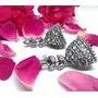 Sharalle Flower Afghani Style Antique Jhumka Women Jewellery Earrings for girls pearl and kundan studded ear cuff big studs- SRF-1 BRAND: Sharalle 3D Design Silver and Black Flower Bunch Earrings Special design for women who love to look different yet Traditional Wear these earrings with ethnic wear such as a saree salwar suit or a lehenga for a classic ethnic look and you can also match them with fashion slippers or ethnic footwear of your choice. OCCASION: luster when worn for a wedding engagement party prom and any special occasion. It will enhance special days like Valentine's day days Anniversaries and Mother's Day. The Earrings are made with high-quality allergen-free material ensuring not to harm your skin and are also suitable for all types of skin and also does not lose their shine over a long of time. Keep the jewelry away from direct heat water perfumes deodorants and other strong chemicas they may react with the metal or plating. Store the jewelry when not in use in a storage box or a cloth pouch to retain its shine. MAKE IN INDIA: All our products are manufactured in India and are exclusively crafted to adorn your persona. oxidized jhumka earrings jhumki traditional ethnic indian antique bohemian tribal silver vintage boho with ghungroo beads tassels filigree work enamel detailing mirror stone embellishments meenakari pearl accents dangling charms intricate designs floral patterns peacock motif geometric shapes cultural motifs contemporary twist chic style. "SharAlle collection makes you feel unique" be the limelight of every occasion