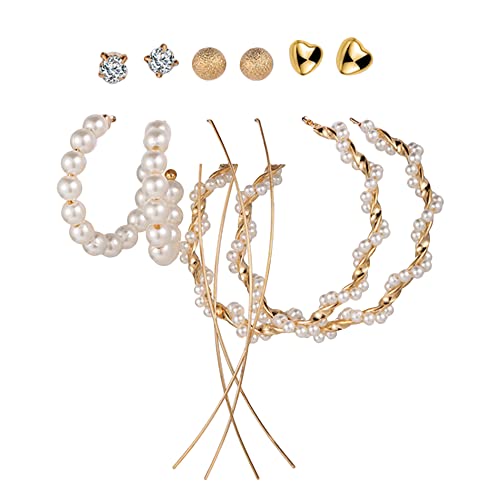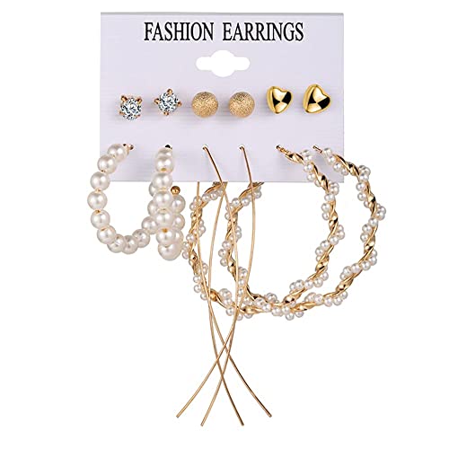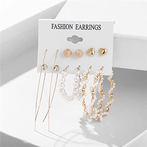 Shining Diva Fashion 6 Pairs Combo Latest Stylish Design Metal Earrings for Women and Girls (A12736er) Golden 1