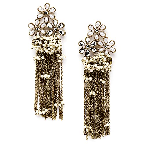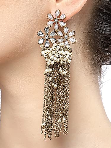 HomeFashionEarringsShining Diva Fashion Latest Stylish Traditional Kundan Tassel Earrings for Women and Girls (13816er)(White) One Size Metal No Gemstone