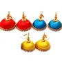 Silk Thread Jhumki 3 Pair Combo Set Red Blue & Yellow