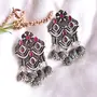 SILVER FILIGREE CRAFT - CHANDI TARKASHI Abstract Floral Design Meenakari Work Oxidised Silver Multi Jhumki Earrings for Women / Girls oxidised earrings jhumka oxidised jhumka earrings for women oxidised jhumka earrings big size meenakari jhumka oxidised earrings set oxidised earrings combo Brass Drops & Danglers Jhumki Earring Clip-on Earring Specifications-: Package Content-: 1 Earrings Pair Dimension (CM): Earrings- Length- 6.5 Width- 4.5 Height- 1 Gross Weight-: 36 Grams Material-: Brass Metal (German Silver) Finish-: Oxidised Silver Plated Color:- Silver - Black Earring Style-: Jhumka / Dangler Back Finding-: Push Back / Butterfly Care Instruction : Avoid Heat & Chemicals Like Perfume Deodorants Alcohol Etc. | Clean With Dry Cotton Cloth | Pack In An Air Tight Container After Use.