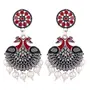 SILVER FILIGREE CRAFT - CHANDI TARKASHI Latest Design Multicolour Meenakari Work 2 Peacock Love Symbol Pearl Beaded Oxidised Silver Jhumka Earrings for Women / Girls (Red Black) Specifications-: Package Content-: 1 Earrings Pair Dimension (inches): Earrings- Length- 2.5 Width- 1.3 Height- 0.25 Gross Weight-: 20 Grams Material-: Brass Finish- silver oxidized with Meenakari Work (Enamel) Gemstone-: Pearl Color:- Multi-Color Earring Style-: Jhumka / Dangler Back Finding-: Push Back / Butterfly Care Instruction : Avoid Heat & Chemicals Like Perfume Deodorants Alcohol Etc. | Clean With Dry Cotton Cloth | Pack In An Air Tight Container After Use.