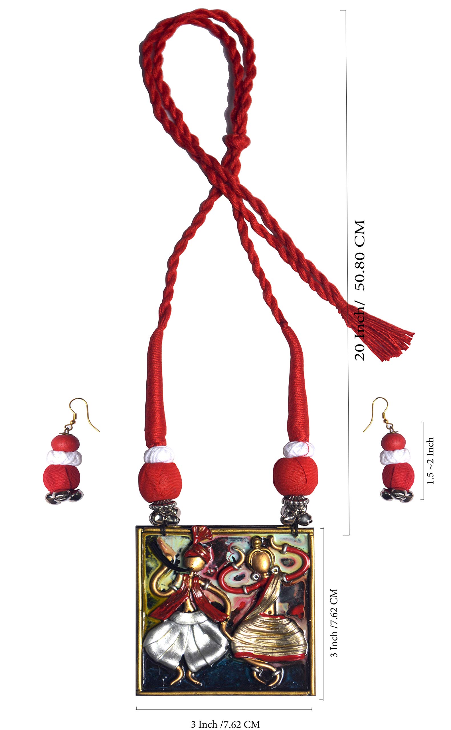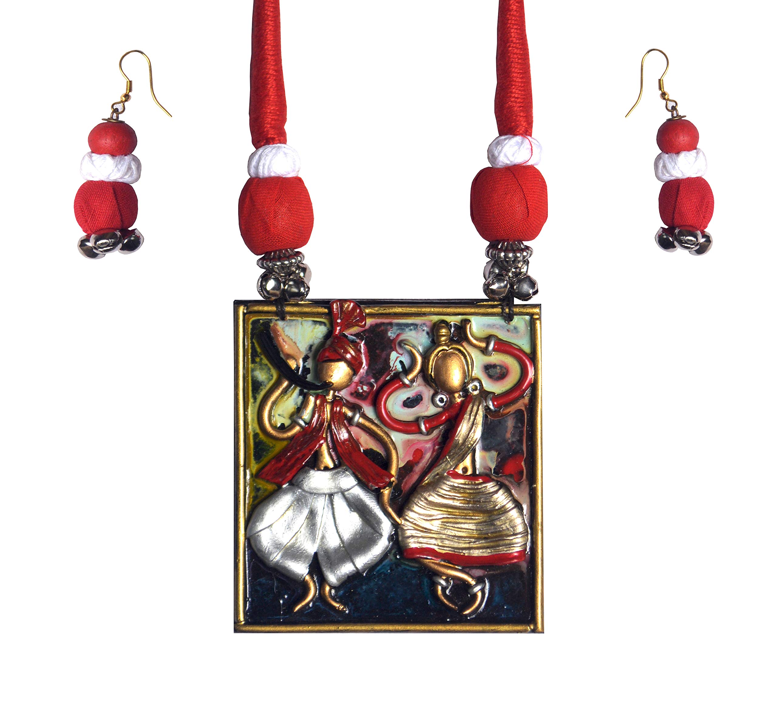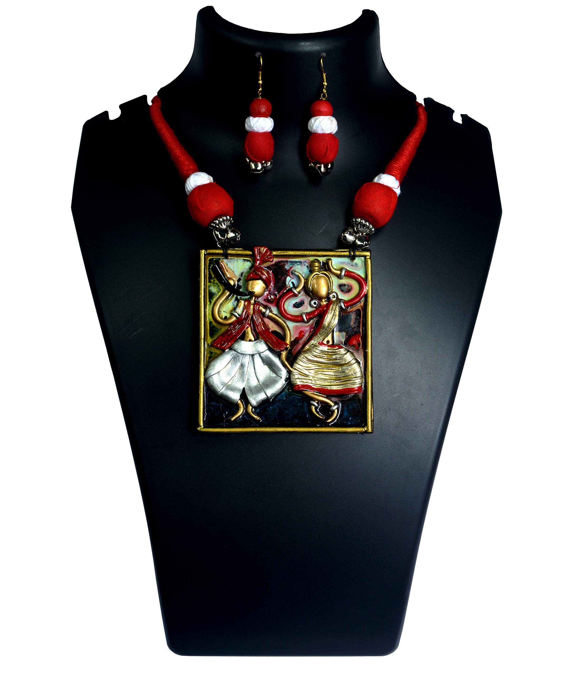 TERRACOTTA JEWELLERY is the Best Necklace maker of Eastern India . We used Heritage Culture of different Side of India in Our Products . We developed our own Creation own design by maintain traditional Culture without modifying its originality . In this Product We use Famous Assamese Bihu Traditional Dance in Our Pendent and the Body Color is made by Acrylic Color and we polished it for Mirror Finishing Glossiness .