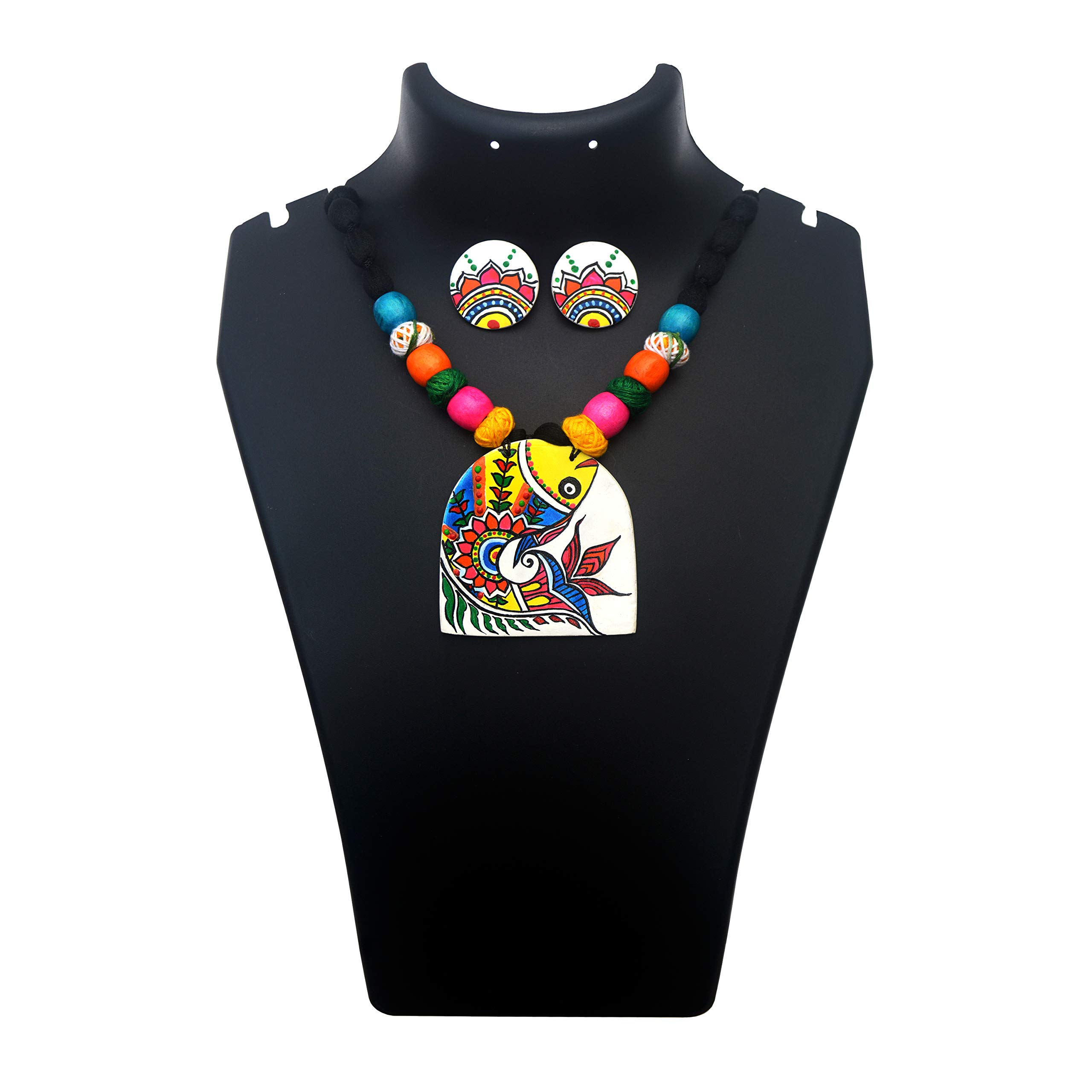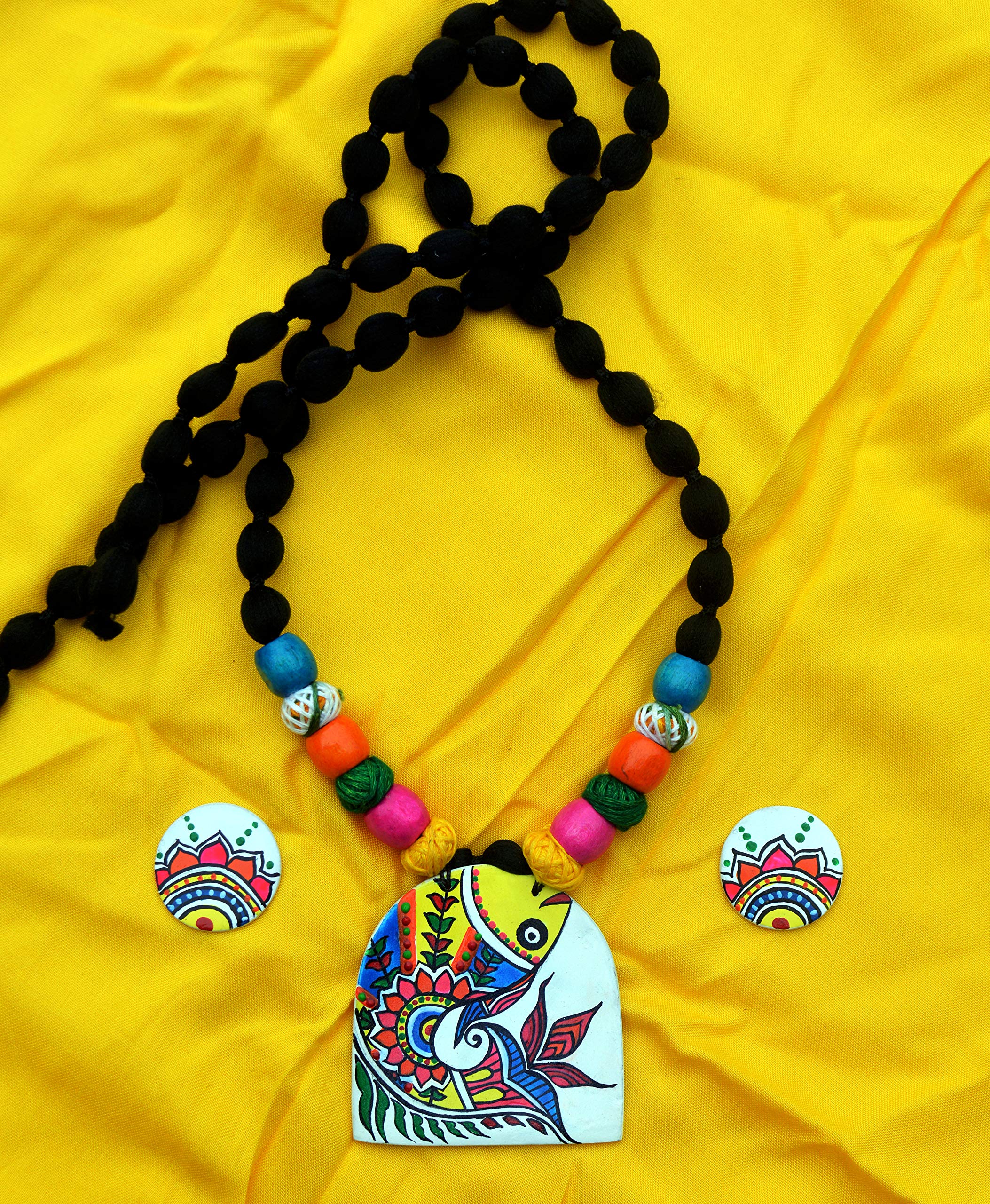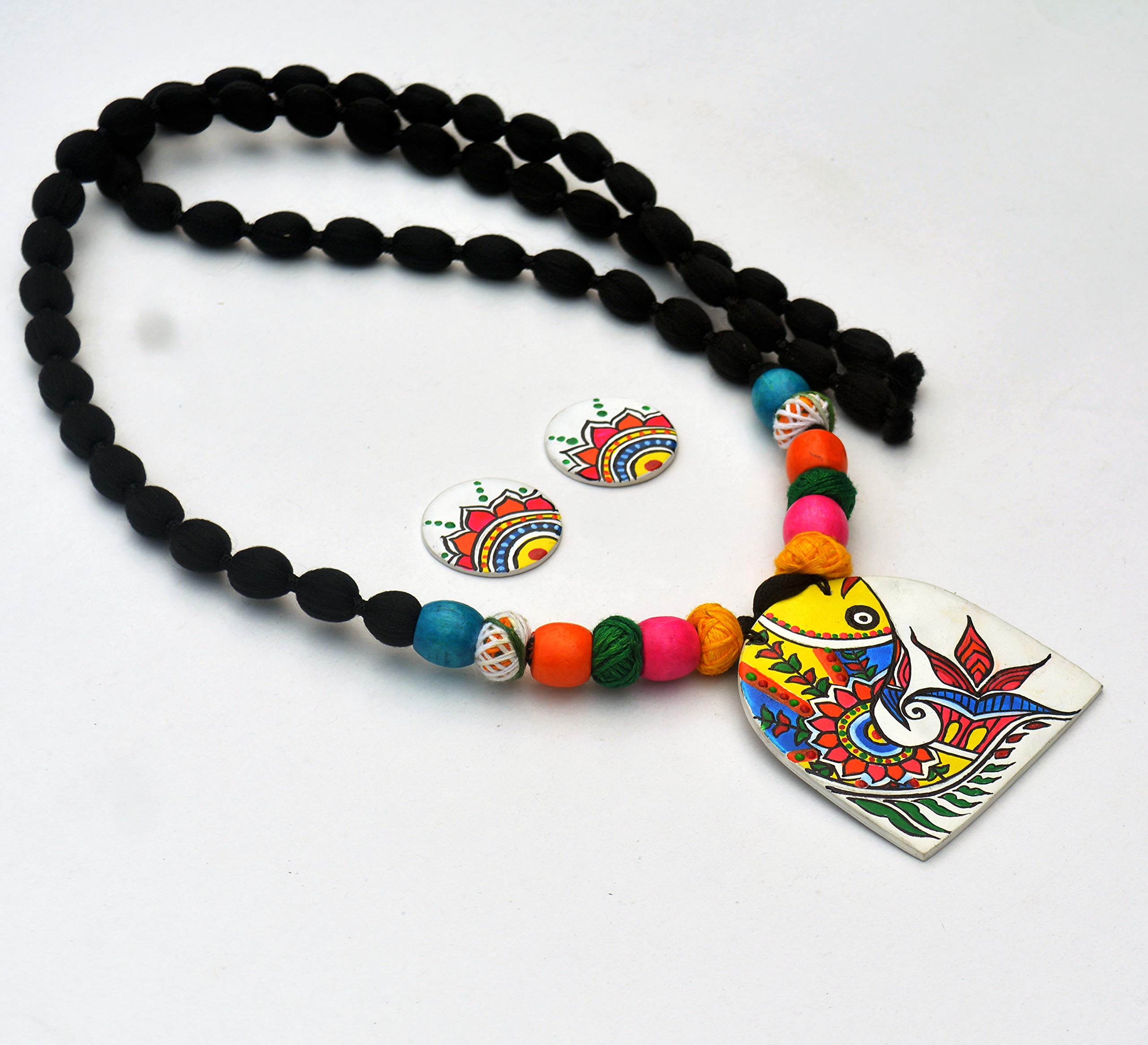 TERRACOTTA JEWELLERY is the Best Necklace maker of Eastern India. We used Heritage Culture of different Side of India in Our Handcrafted jewellery. We developed our own Creation own design by maintaining traditional Culture without modifying its originality. In This jewellery We use Famous Painting Madhubani in Our Pendent and the painting is made by Acrylic Color and we polished it for Glossiness