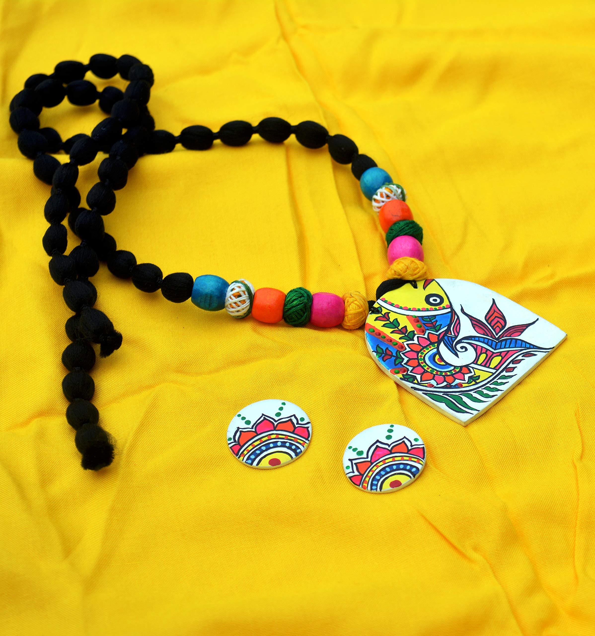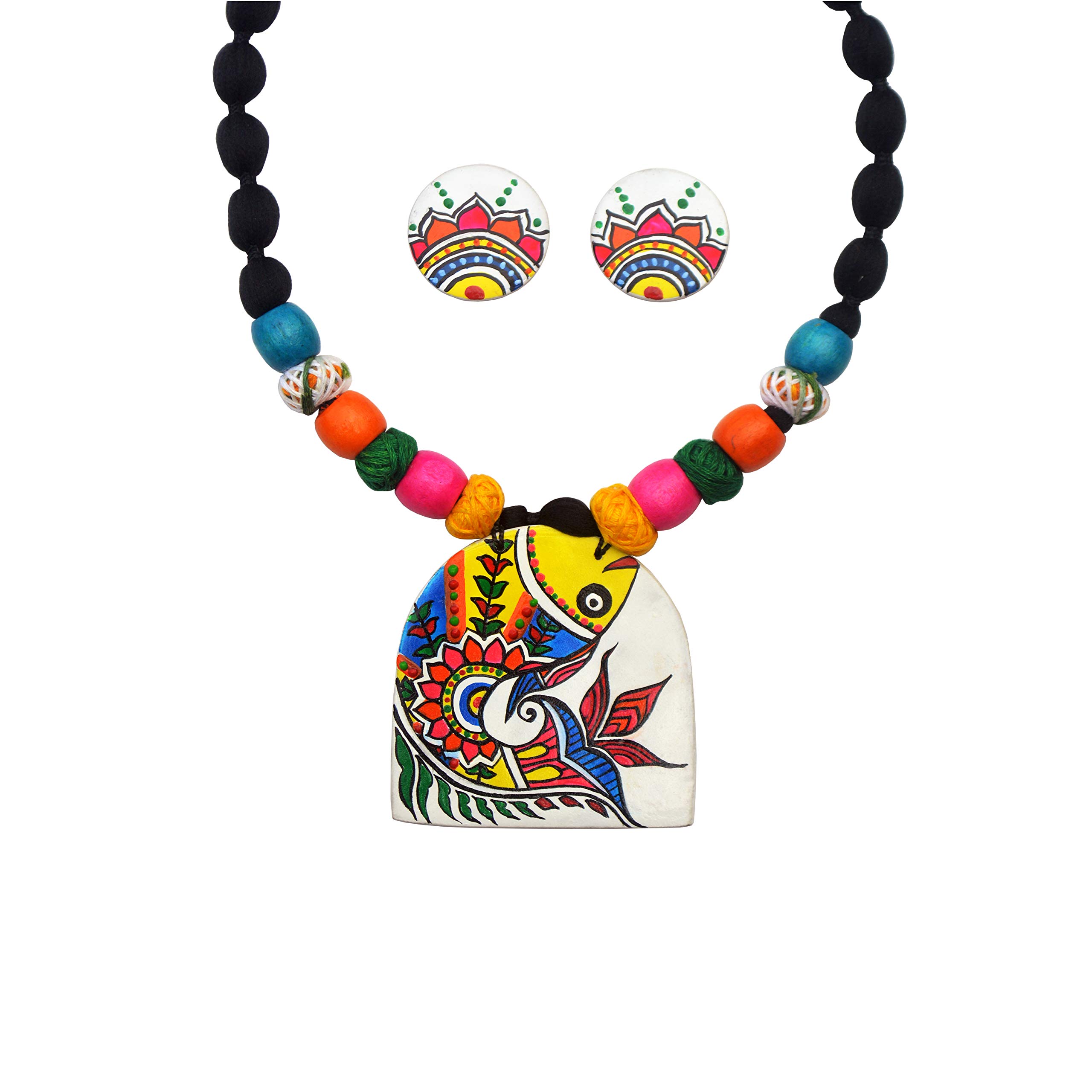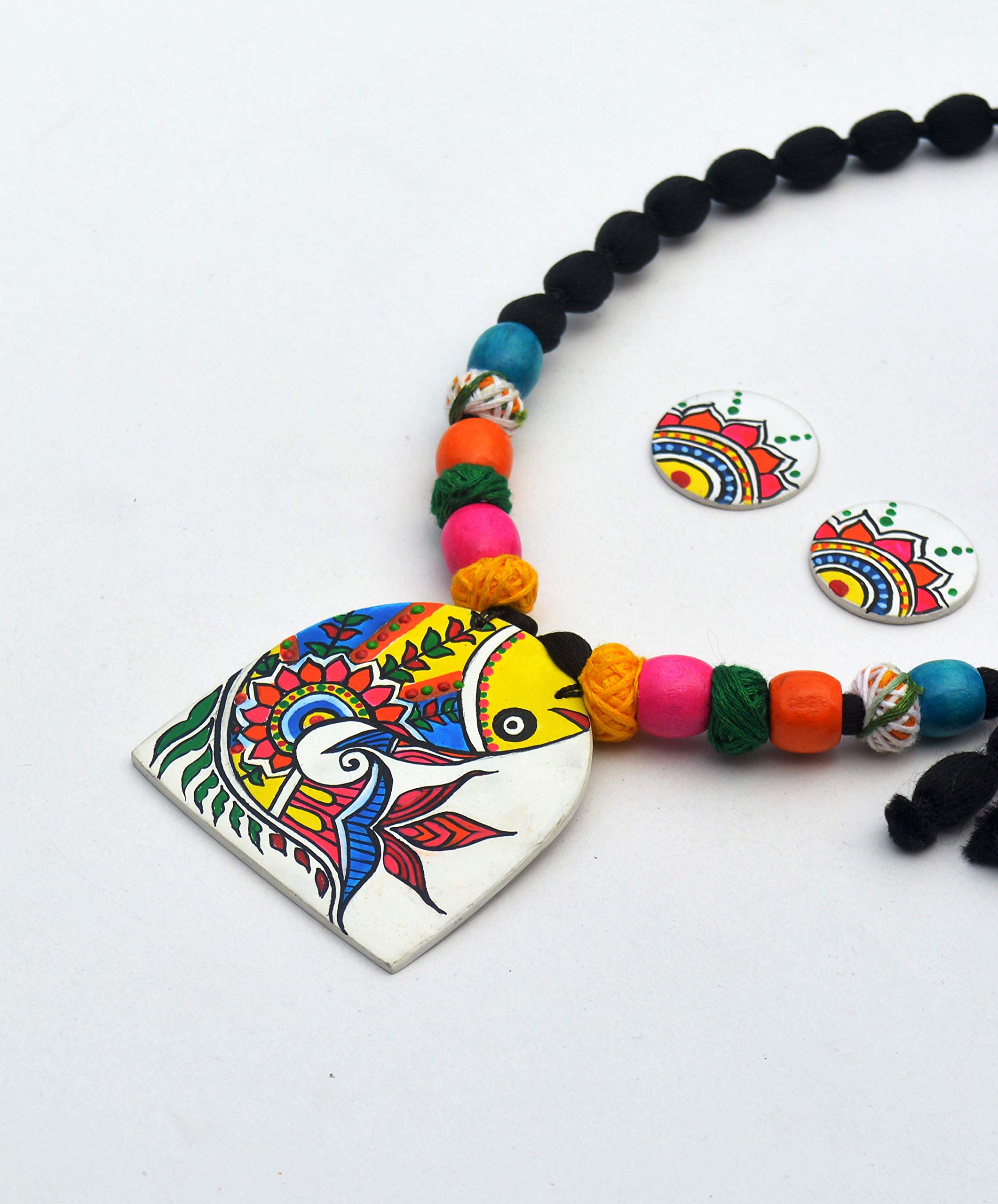 TERRACOTTA JEWELLERY is the Best Necklace maker of Eastern India. We used Heritage Culture of different Side of India in Our Handcrafted jewellery. We developed our own Creation own design by maintaining traditional Culture without modifying its originality. In This jewellery We use Famous Painting Madhubani in Our Pendent and the painting is made by Acrylic Color and we polished it for Glossiness
