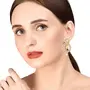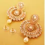 HomeFashionEarringsTouchstone Indian Bollywood Chandbali Moon Kundan Polki Faux Pearls And Blue Sapphire Rhinestone Long Bridal Designer Jewelry Chandelier Earrings In Gold Tone For Women
