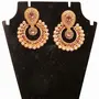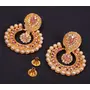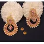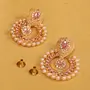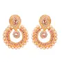 HomeFashionEarringsTouchstone Indian Bollywood Chandbali Moon Kundan polki faux pearls and Light Pink sapphire Rhinestone long bridal designer jewelry chandelier earrings for women in gold tone