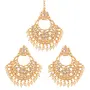 HomeFashionEarringsTouchstone Indian Bollywood Grand Mughal Kundan Look Fuax Pearls Hangings Chandelier Floral Designer Jewelry Earrings Mangtika Combo In Gold Tone For Women.