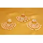 Touchstone Indian Bollywood Grand Mughal Kundan Look Fuax Pearls Hangings Chandelier Floral Designer Jewelry Earrings Mangtika Combo In Gold Tone For Women.