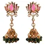 Touchstone Indian Bollywood Indian Bollywood Meenakari Enamel Lotus Beads Jhumki Designer Jewelry Earrings in Gold Tone for Women.