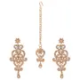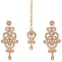 Touchstone Maha Diwali Bonanza Dhamaka Offer Finely Handcrafted Studded Diamond Look Filigree Floral Rhinestone Designer Jewelry Chandelier Earrings Mangtika Combo In Antique Gold Tone For Women.