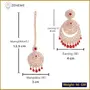 Women Stylish Shiny Round Design Rose Gold-Plated Maang Tikka Earring Set Jewellery