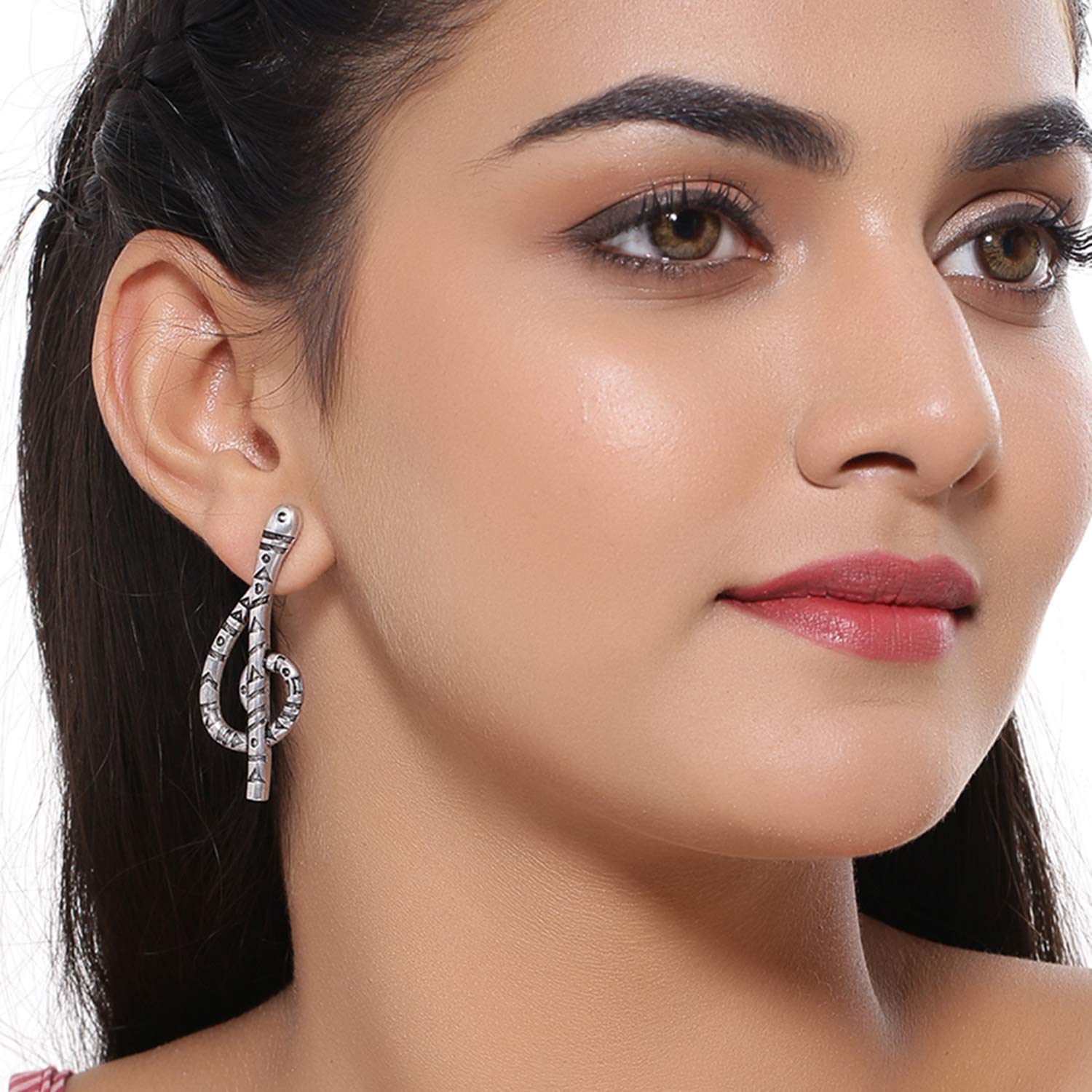 Women's Aztec Bar Ampersand Earrings(Free Size)(Silver)