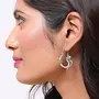 Women's Brass Moksha Om Design Hoop Earrings With Turquoise Blue Stone(Free Size)(Silver)