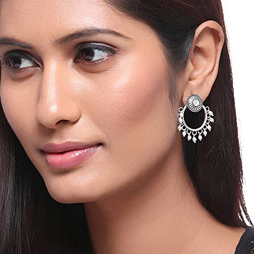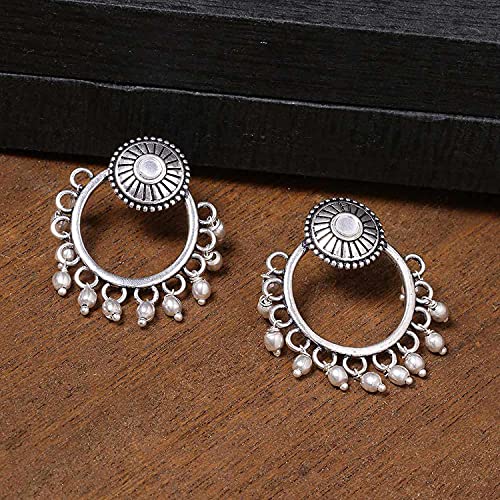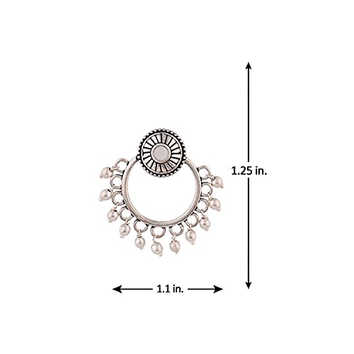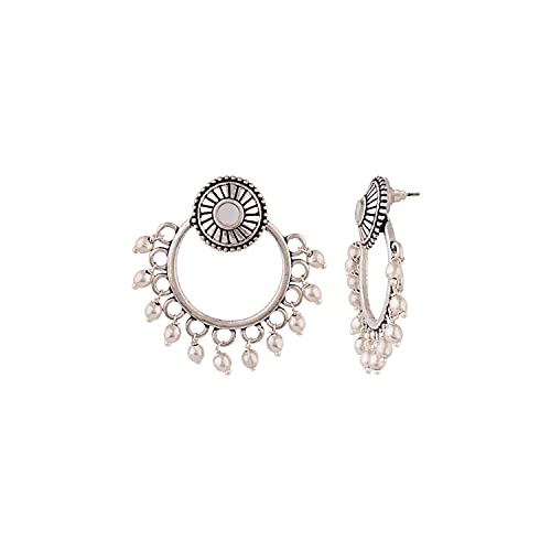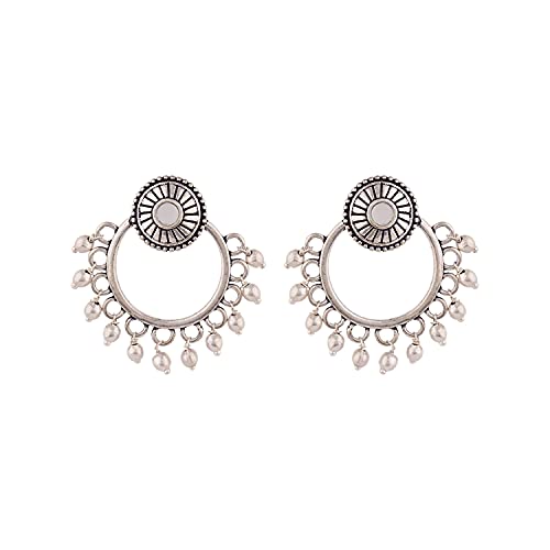 Women's Brass Oxidized Plating Round Shape Hoop Earrings, Suitable For Work Wear (Silver)