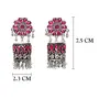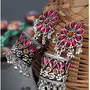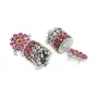 Women's German Silver Oxidised Floral Designer Stone Studed Traditional Jhumka Earrings by Jhumki Earrings Pink