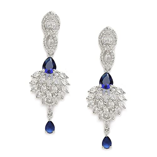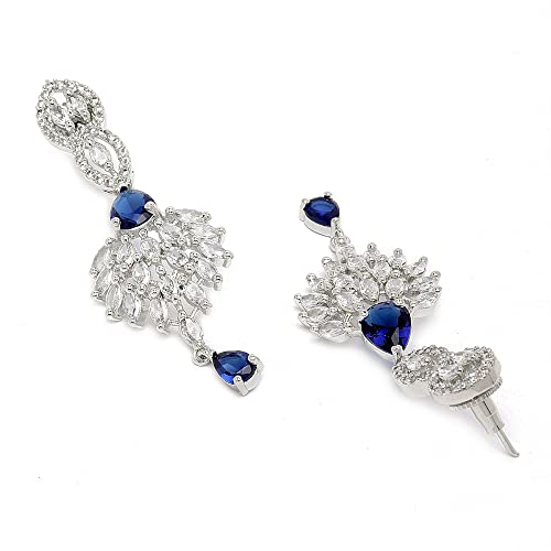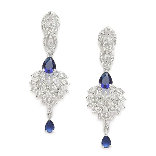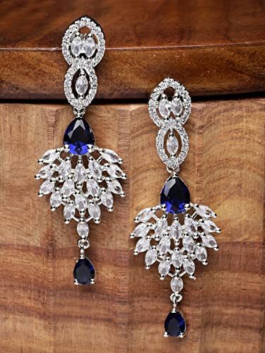 What You Get:- Oxidised Silver-Plated Drop Earrings Blue & White American Diamond studded Spiked Shaped Secured with Post and Back closure. LUXURY GIFTING IDEA:- Give a meaningful and luxurious gift with Zeneme Jewellery. A favourite gift choice each Zeneme jewellery for women comes with a Signature gift box and makes excellent gift choice for birthdays wedding anniversaries Valentine's Day Mother's Day Diwali Christmas and all your special occasions. MATERIAL CRAFTSMANSHIP:- Finest quality stones and environmentally friendly nonprecious Metals are used for making the jewelry set. It is safe for wearing for long hours. Exquisite handwork is required since some crystals are too small to pick my fingers really hard and time-consuming. JEWELLERY CARE:- Keep the jewellery away from direct heat water perfumes deodorants and other strong chemicals as they may react with the metal or plating. Store the jewellry when not in use in a storage box or a cloth pouch to retain its shine. Nickel free and Lead free as per International Standards that makes it very skin friendly. The plating is non-allergic and safe for all environments.