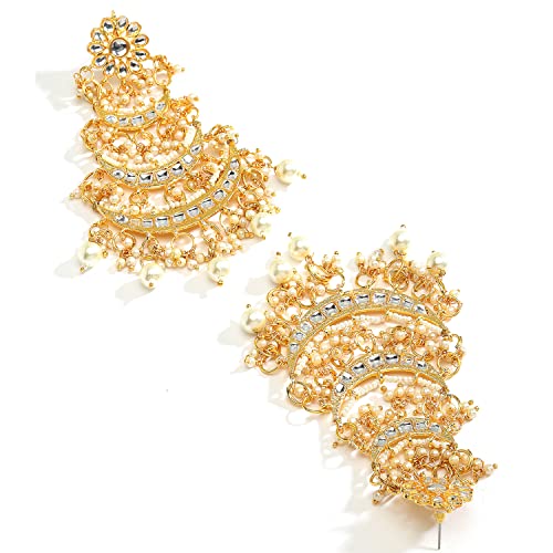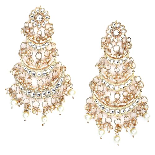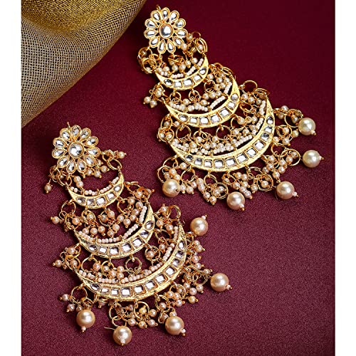 Women's Plated Crescent Contemporary Floral Embelished Designed Stud Earring Jewellery (Style 5) Medium Rose Gold