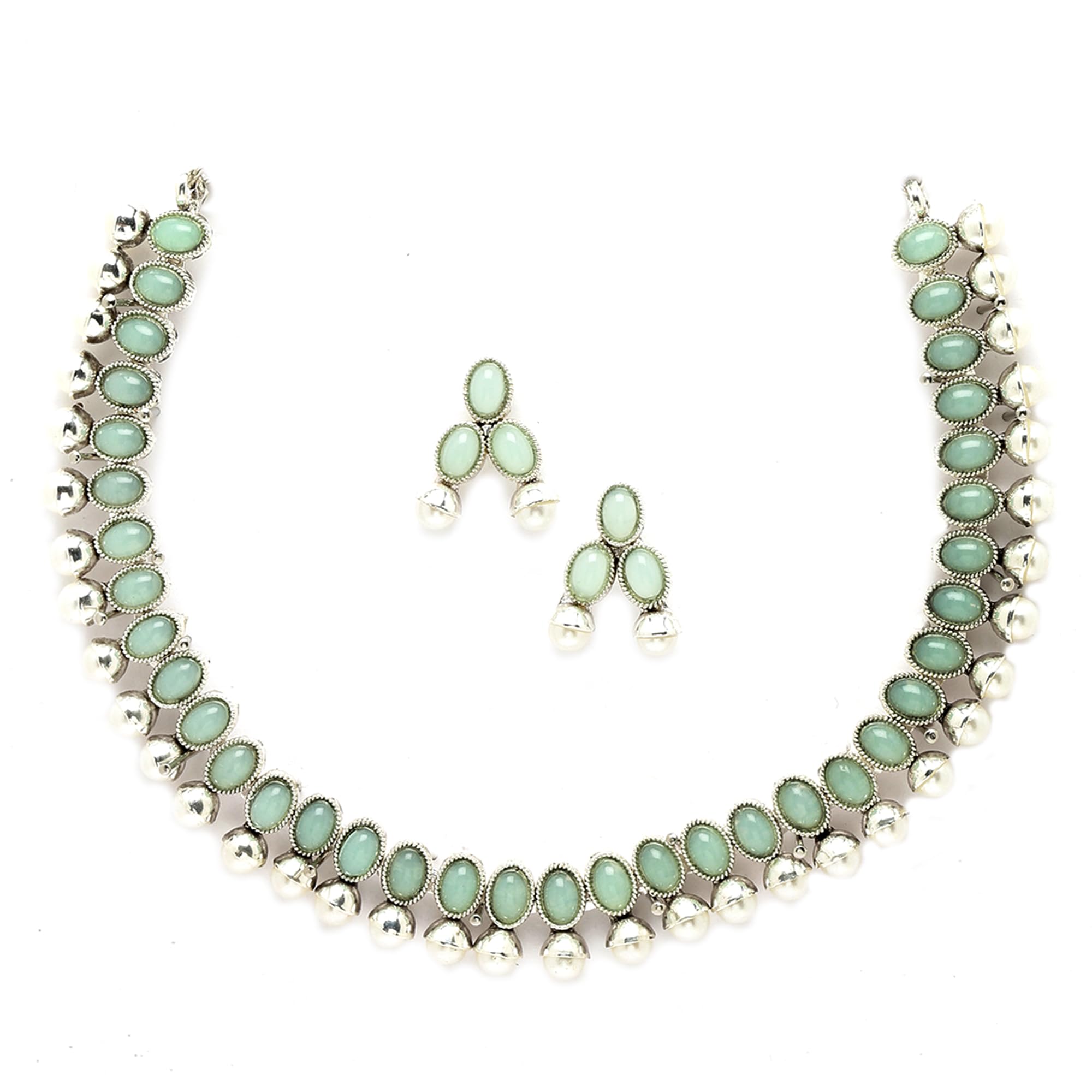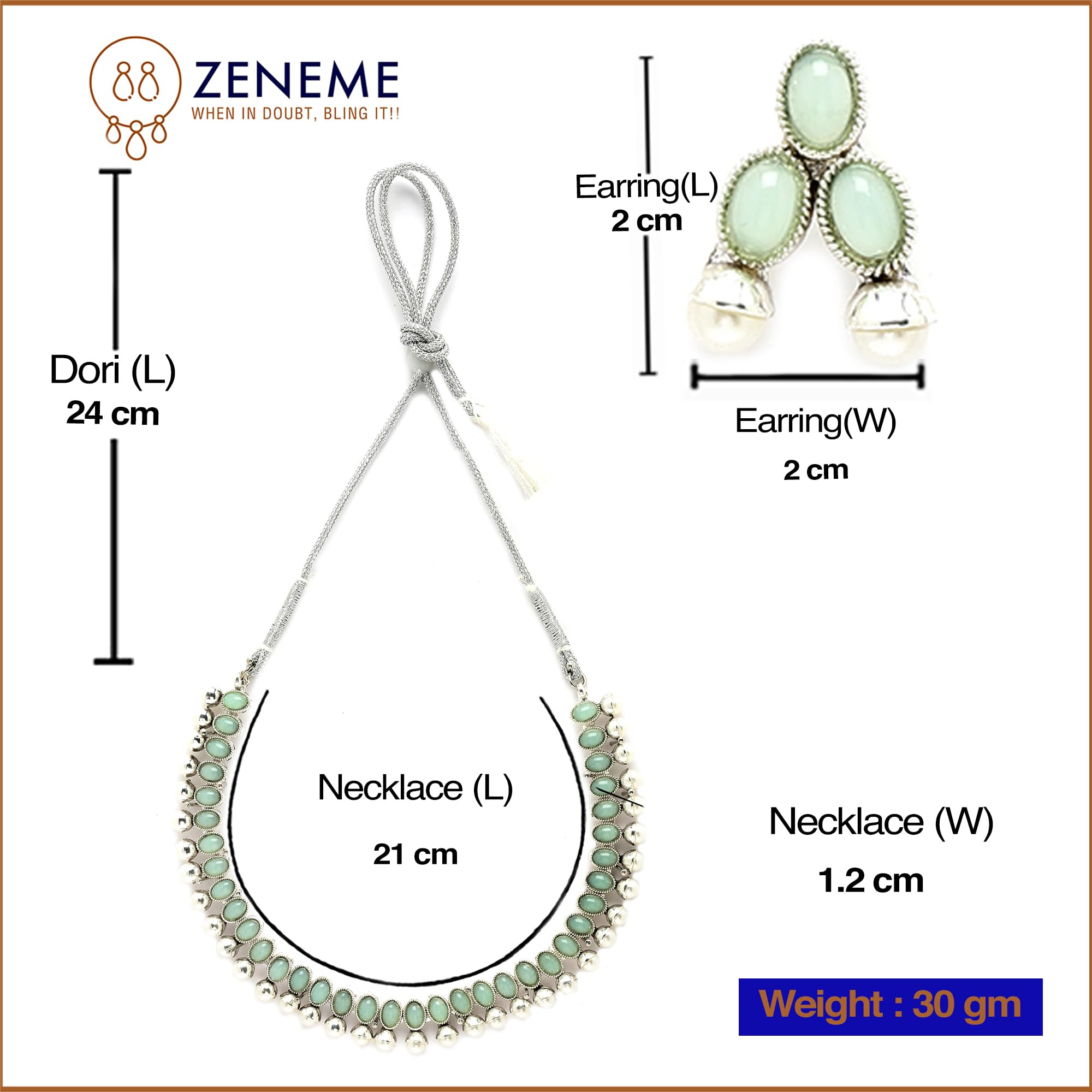 HomeFashionNecklaceZENEME Antique Oxidised Silver Plated Traditional Temple Coin Red American Diamond Studded Necklace With Earrings Jewellery For Women & Girls