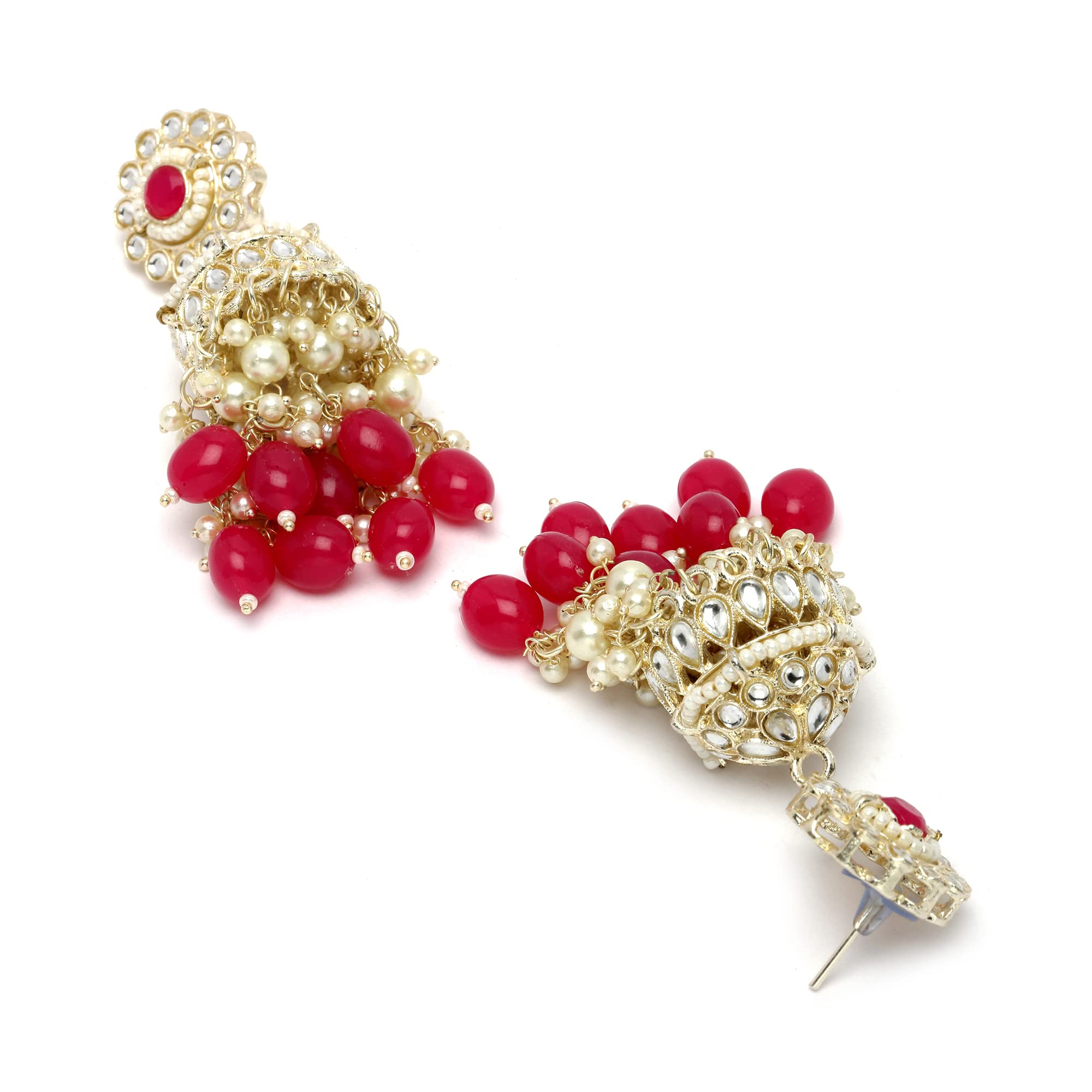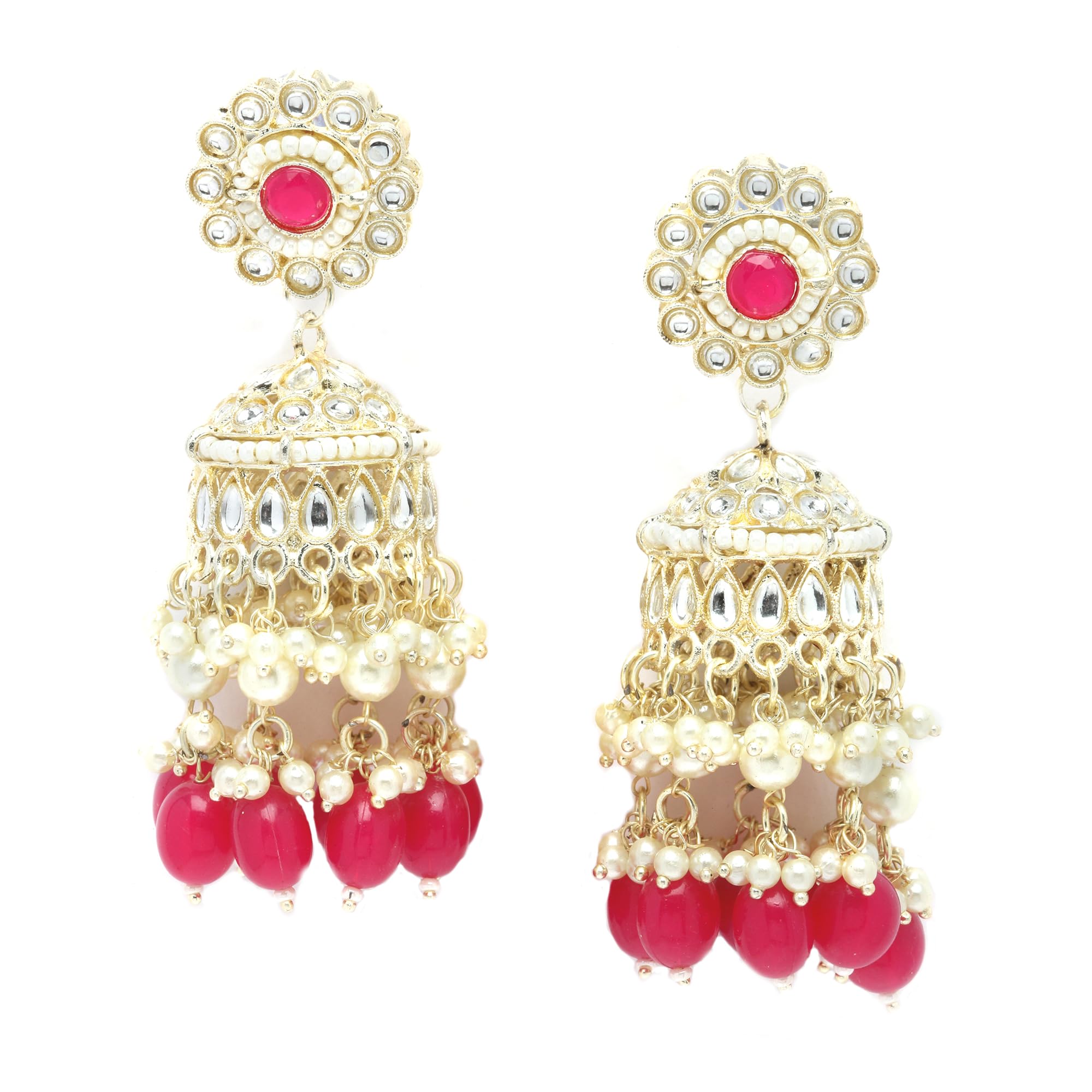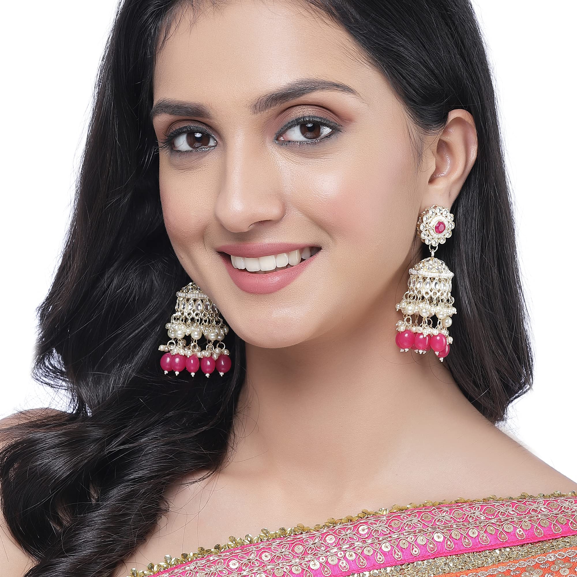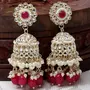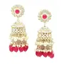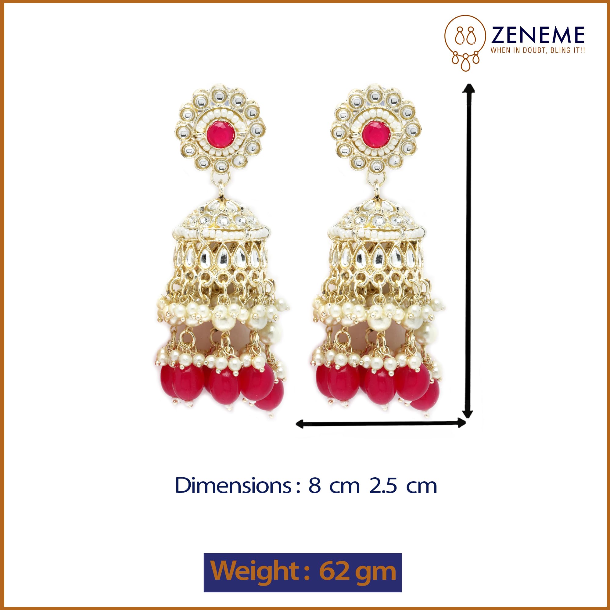 Earrings from ZENEME will add a fashion-forward twist to your jewellery collection. This Gold-Plated pair can be matched with ethnic amd traditional outfit. Gold-Plated Kundan & Pearls studded Flower Shaped Vilandi Jhumka Earrings secured with Post and Back closure.