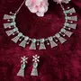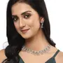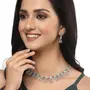 ZENEME Rhodium-Plated Silver Toned Teardrop Shaped American Diamond Studded Necklace with Earrings Jewellery Set for Girls and Women