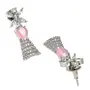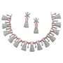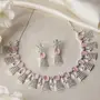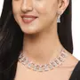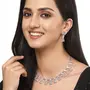 ZENEME Rhodium-Plated Silver Toned Teardrop Shaped American Diamond Studded Necklace with Earrings Jewellery Set for Girls and Women