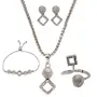 ZENEME Rhodium-Plated Silver Toned White American Diamond studded Necklace Earrings Bracelet & Ring Jewellery Set for Girls and Women