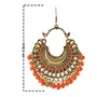 Stunning heavy look ethnic dangler chandbali hook earrings in gold tone.With intricate carved work and amazing red enamel coloring gives a traditional touch to the earrings.Golden & red beads dangle to create a striking look.Perfect with ethnic & traditional wear. Can also be a perfect gifting option for friends and dear ones.Each earring weighs- 25 g ; Earrings Length=3.2'' earrings Width=2''