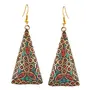 Rich and appealing triangular Tibetan hook earrings.Beautifully handcrafted with green & gold inlay work.These fancy earrings are ideal for daily wear. Wear these with western as well as traditional attire.It can also be the perfect gift that you would want to give to your friends or loved ones. Flaunt your style with these latest trendy and stylish jewelry.Earrings length=1.8''