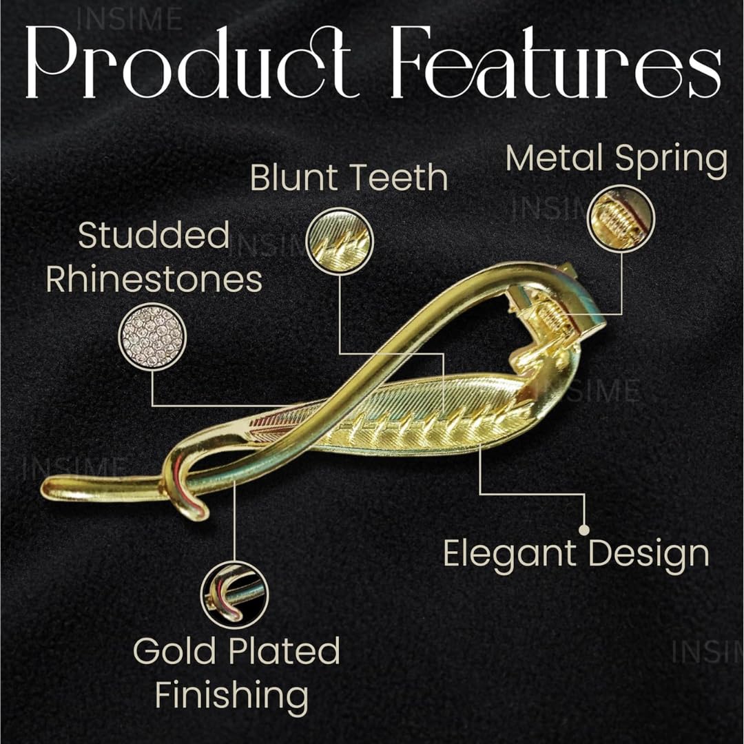 INSIME Rhinestone stone hair clips for women Stylish | Sparkling Big French barrette hair bun clips | Fancy metal hair clips bun accessories Korean banana hair clip for wedding