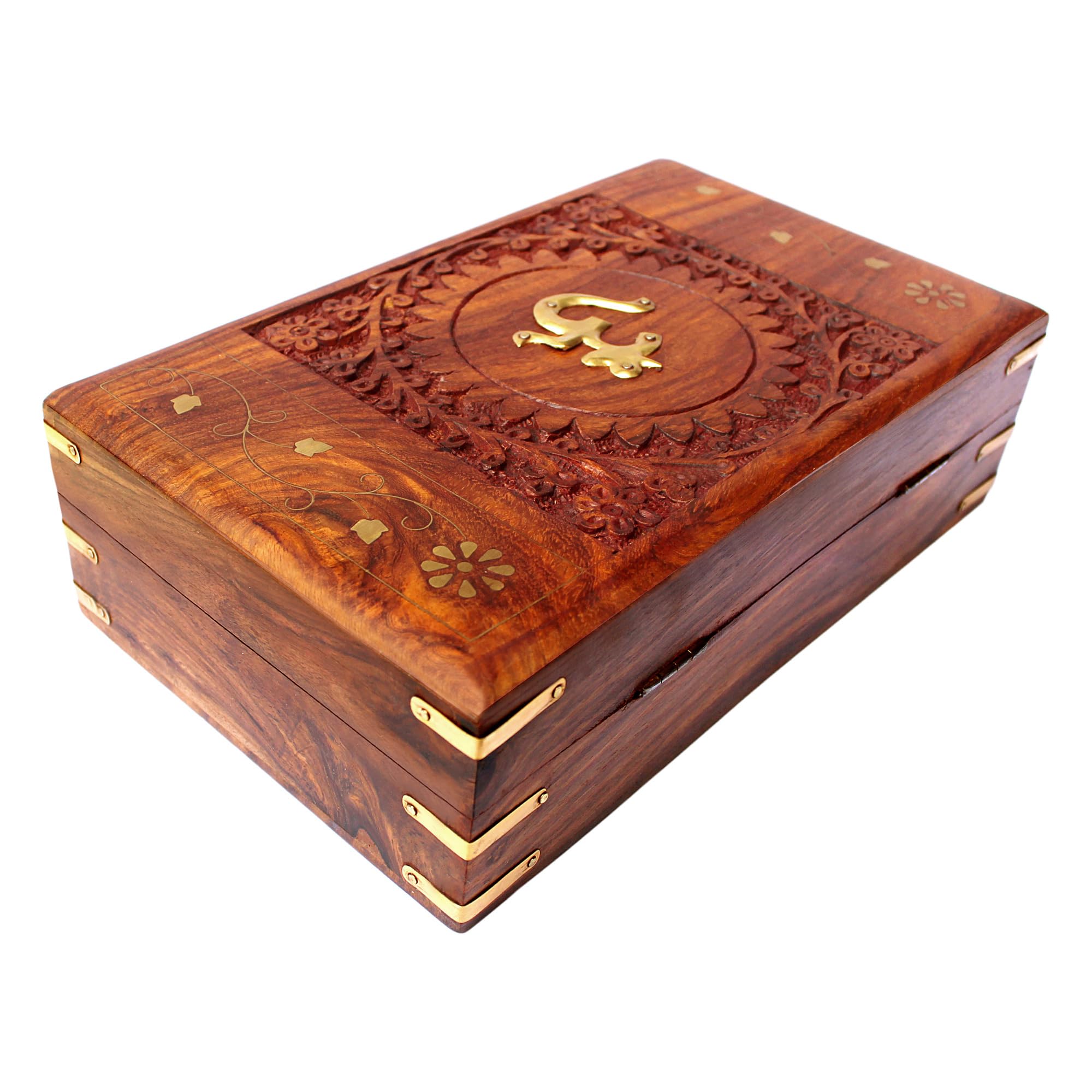 Protect and preserve your valuables with this handcrafted wooden jewelry box. You always want to keep your best valuables precious jewelry safely. This wooden jewelry box is ideal for organizing your jewellery collection. This classical wooden jewelry storage case has been built from real wood and polished gold hardware. A stylish way to keep your jewelry organized. This wooden jewelry box has a curved traditional design rich brown finish. Christmas Gifts Ideas for women here wife sister friends.
