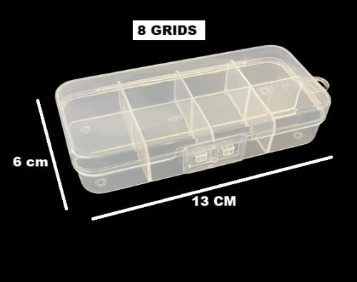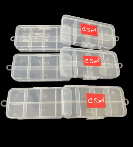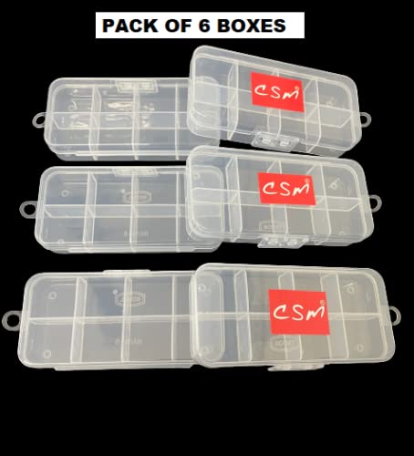 Csm 8 Grid Compact Small Size Jewelery Boxes (Pack Of 6 Boxes) - For Home & Locker - Plastic Transparent