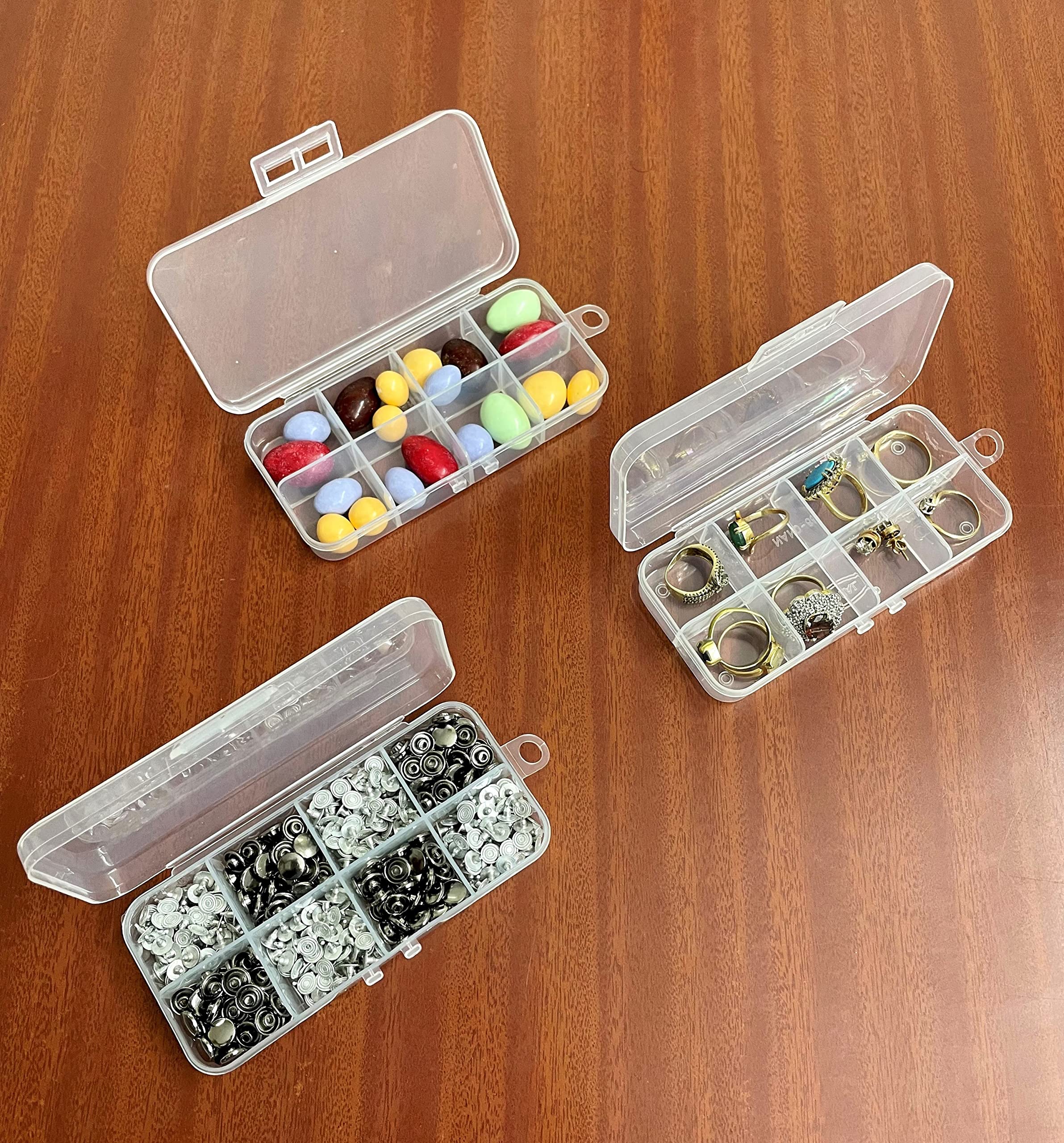 Multipurpose Storage boxes:- These storage boxes consist multiple grids ideal for storing earrings clips rubber bands rings and other accessories. These boxes can also be used for keeping small stationery or as a medicine box.